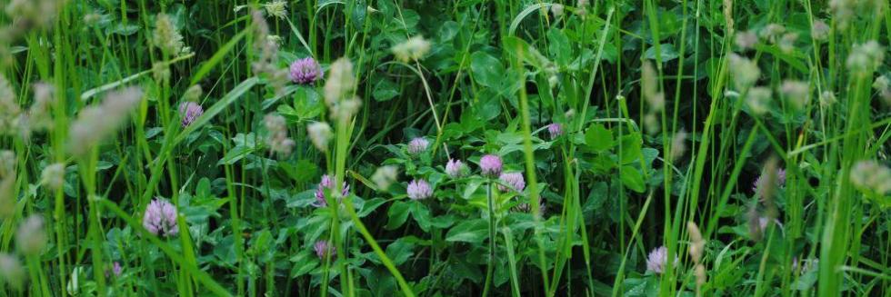 Red clover in flower. Different species come with different tradeoffs - in biomass, persistence, and nutrition, to name a few.
